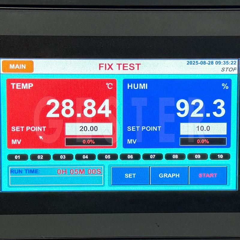 Cámara de pruebas de sobremesa para acondicionar muestras antes de la prueba. También puede utilizarse para diversos materiales en pruebas alternas de alta y baja temperatura. La temperatura, la humedad y el tiempo de prueba son programables.