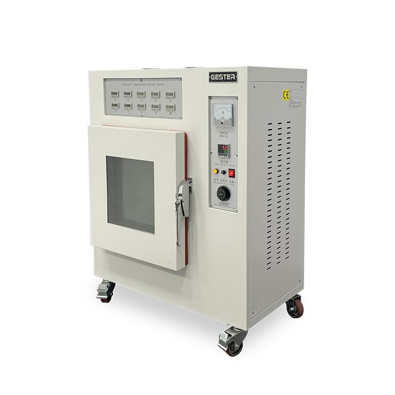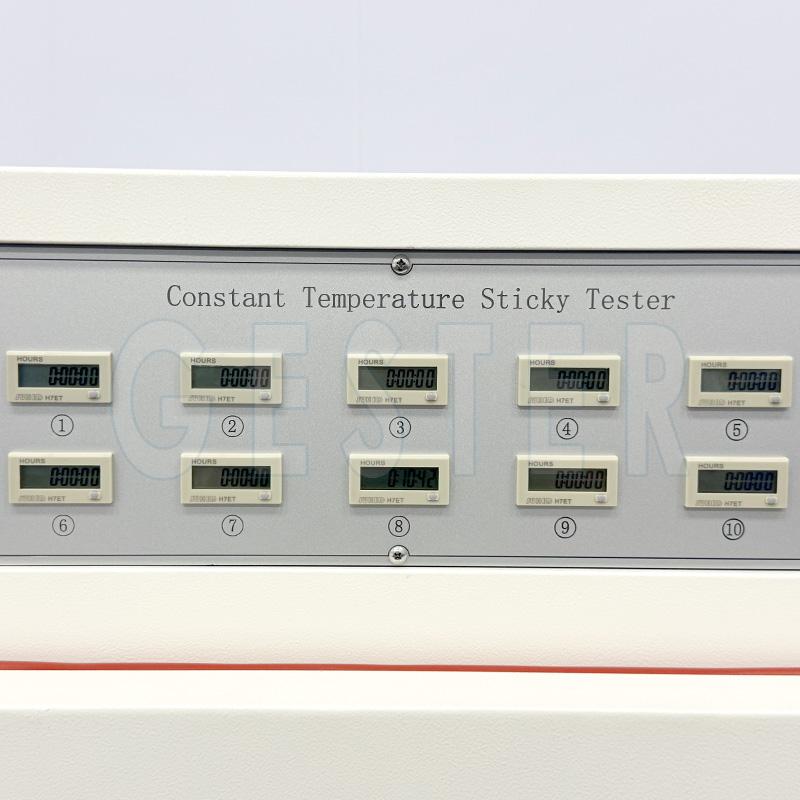 Se utiliza para realizar una prueba de carga estática sobre la fuerza adhesiva de la cinta, cronometrando automáticamente el tiempo que la cinta puede resistir bajo una carga y temperatura determinadas. Si se desprende a la mitad, se registra el tiempo para confirmar el tiempo de adhesión de la cinta y comprobar su duración.