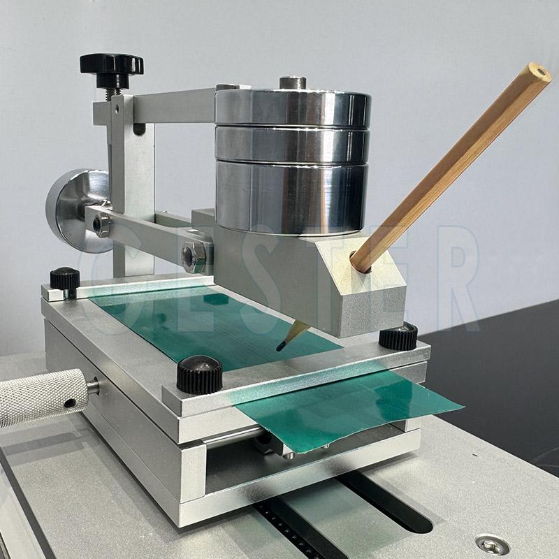 El lápiz de dureza raya la superficie de la película de recubrimiento para probar la dureza de la superficie de la capa de película de recubrimiento, el lápiz de dureza se fija en un ángulo de 45º, de modo que el extremo frontal del centro del lápiz y la superficie de la capa de película de recubrimiento en contacto con la carga adecuada, de acuerdo con una cierta velocidad (estándar JIS 0.5 mm / s) para mover la plataforma de prueba de modo que la superficie de la capa de película de recubrimiento se mueva a través del centro del lápiz, la capa de película de recubrimiento no causará daños (rayado) el grado de lápiz más suave puede considerarse como la dureza de la capa de película de recubrimiento.