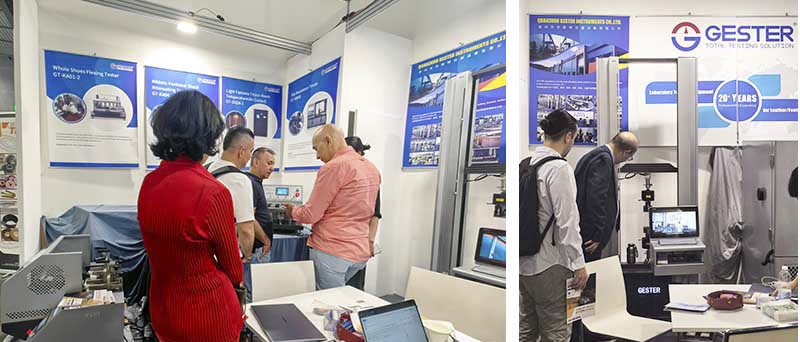 Durante la exposición, el stand de GESTER recibió a numerosos visitantes de todo el mundo. Expresaron gran interés en los métodos de prueba para la resistencia al impacto, la flexión, la solidez del color y la abrasión de los materiales del calzado. Nuestros equipos de prueba de calzado constituyen una solución eficaz para mejorar la calidad del producto. Mediante demostraciones in situ y presentaciones en vídeo, mostramos las ventajas técnicas de los equipos de prueba de calzado de GESTER de forma exhaustiva y desde múltiples perspectivas.