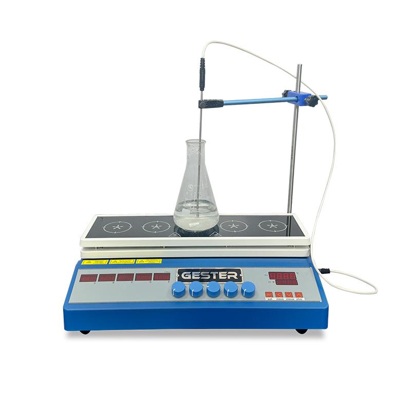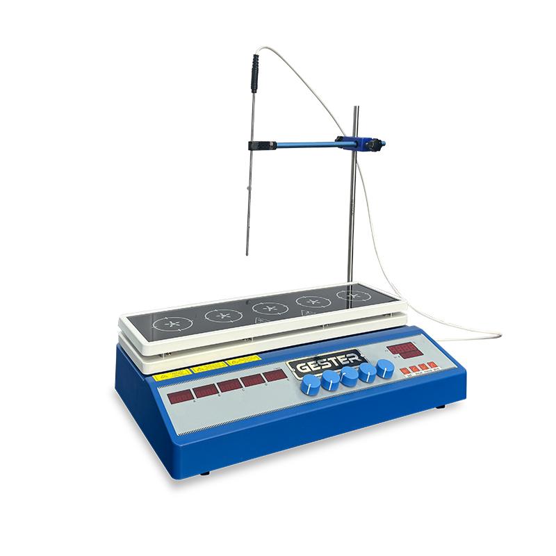 Agitador de placa calefactora magnética: utiliza controlador PID difuso, pantalla digital dual, función de autodeterminación, con alta precisión de medición, baja temperatura roja, operación con un solo botón, control de silicio, medición de termopar en interior o exterior, salida de control de silicio, voltaje de 160-240 V con amplio rango y función de protección de temperatura.