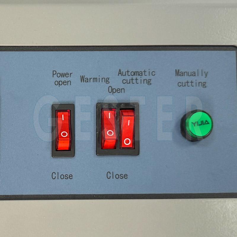 Incorpora un instrumento inteligente manual de nueva generación y control de salida de relé con temporizador de encendido y apagado. El periodo de temperatura constante del instrumento es corto y el sobreimpulso es mínimo. El control de temperatura incorpora una mesa de control de temperatura de moldeo para garantizar la precisión y la estabilidad del producto. Para mayor comodidad del usuario, este instrumento integra los métodos de corte, controlado por tiempo y manual, en uno solo (el intervalo y el tiempo de corte se pueden configurar aleatoriamente).