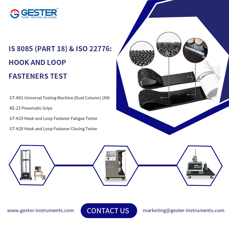 IS 8085 (Parte 18) e ISO 22776: Prueba de cierres de gancho y bucle Usamos diversos cierres a lo largo de nuestra vida, y uno de los más conocidos es el cierre de velcro, también conocido como velcro. Este diseño, simple pero potente, se utiliza en ropa, calzado y productos de consumo, pero ¿te has preguntado alguna vez qué tan resistentes son realmente estos cierres de velcro? ¿Qué fuerza pueden soportar para mantener los artículos seguros? La resistencia al pelado y al corte son dos indicadores importantes del rendimiento de los cierres de gancho y bucle. En este artículo, presentaremos en detalle estos dos métodos de prueba y las normas relacionadas, así como los equipos aplicables. 1. Prueba de resistencia al pelado 1.1 Definición de resistencia al pelado La resistencia al desprendimiento se refiere a la capacidad de los cierres de gancho y bucle para evitar el desprendimiento en la dirección de separación vertical, generalmente expresada en N/mm (Newton/mm). Este índice refleja la adherencia de los cierres al abrirlos y cerrarlos repetidamente o al aplicarles fuerza. 1.2 Las pruebas de resistencia al pelado descritas en este documento se basan en las normas IS 8085 (Parte 18) / ISO 22777. especifica un método de prueba para determinar la resistencia al pelado de los sujetadores de contacto y cierre antes y después del uso repetido. Método de prueba: Después de unir el lado del gancho y el lado del cabello, fíjelo en la máquina de tensión, quítelo a una velocidad constante y registre la curva de fuerza de pelado. 2. Prueba de resistencia al corte 2.1 Definición de resistencia al corte La resistencia al corte se refiere a la resistencia al corte de los cierres de gancho y bucle en la dirección de una fuerza paralela, generalmente expresada en kPa (kPa). Este índice refleja la estabilidad del cierre ante fuerzas laterales, como en correas de mochilas, cinturones de seguridad y otras aplicaciones. 2.2 Las pruebas de resistencia al pelado descritas en este documento se basan en las normas ISO 22776. La norma ISO 22776 especifica los métodos de ensayo para la resistencia al corte de los cierres de gancho y bucle. Método de prueba: Después de unir la superficie del gancho y la superficie del cabello, aplique una fuerza de corte hasta la separación y registre la fuerza de corte máxima. 3. Equipo aplicable 3.1 GT-K01 Máquina de Ensayos Universal (Doble Columna) 1KN Mordazas neumáticas KE-23 Solicitud Este comprobador está diseñado para realizar pruebas de tracción, compresión, flexión, cizallamiento, resistencia de adhesión, pelado, desgarro y otras pruebas en calzado, caucho, plástico, cuero, metal, nailon, tela, papel, aviación, embalaje, construcción, petrificación, electricidad, vehículos y otros materiales. Es un equipo básico para control de calidad, inspección de recepción, pruebas físicas, investigación mecánica y desarrollo de materiales. 3.2 Probador de fatiga de cierres de gancho y bucle GT-K19 Es un equipo básico de control de calidad, in...