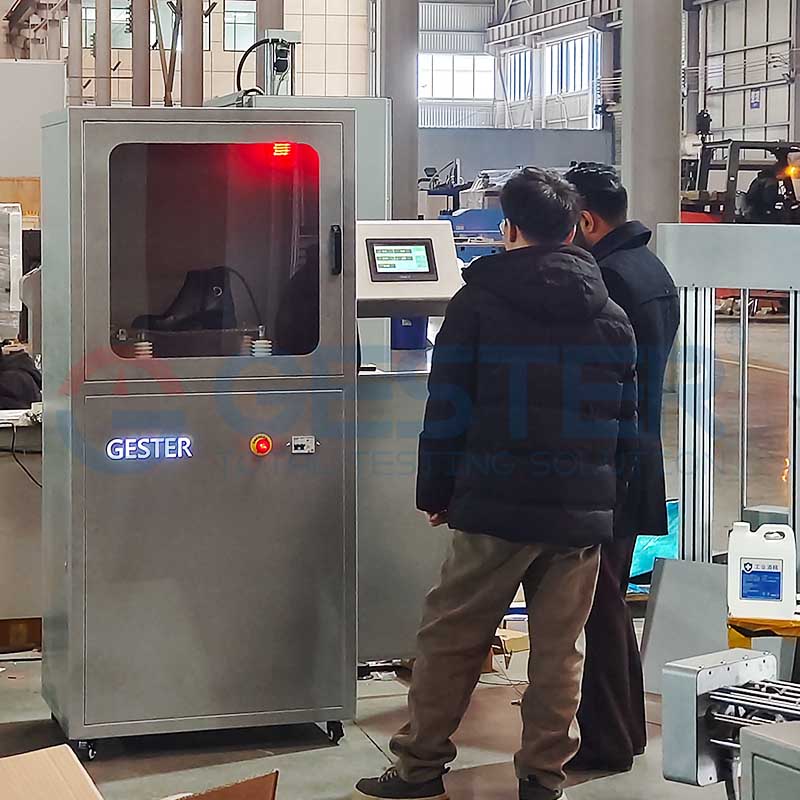 Recently, representatives of an Indian client visited GESTER International Co., Ltd. for an on-site inspection and business discussion. Our team warmly received the delegation. The purpose of this visit was for the client to further understand our company’s capabilities and to conduct an on-site inspection of footwear testing equipment.