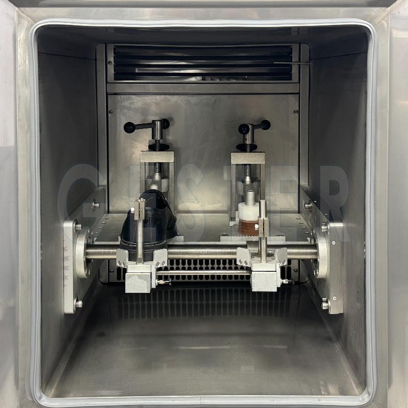 Solicitud: Este Cámara de congelación para flexión de calzado completo Se utiliza especialmente para pruebas de flexión a baja temperatura en calzado completo, como calzado deportivo, calzado de seguridad, etc. A baja temperatura, se evalúa la resistencia a la flexión o el agrietamiento tras un período de flexión recíproca con la frecuencia y el ángulo especificados. Principio: Presionar la palma del zapato, flexionando el talón continuamente.Normas: SATRA TM92 |